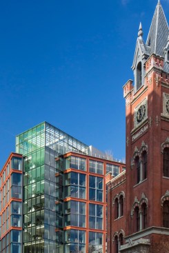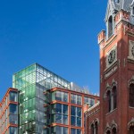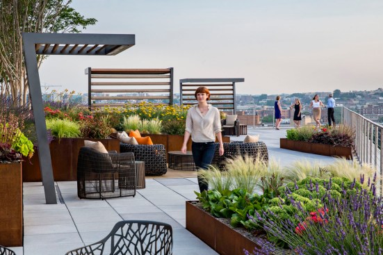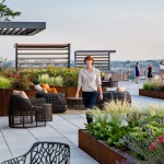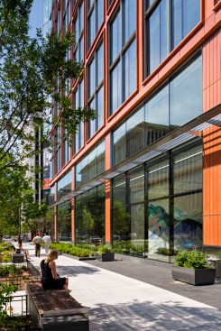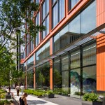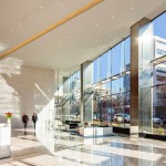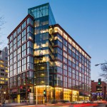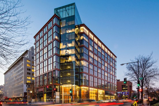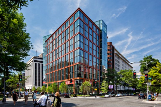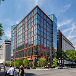 1200 Seventeenth, a 170,000 SF, 11-story trophy office building located at the northern edge of the central business district in Washington, DC, takes full advantage of the site’s unobstructed perimeter and expansive views of surrounding landmark buildings and urban spaces. Situated on a triangular parcel formed by the intersection of Rhode Island Avenue and M Streets NW, the building’s massing consists of two terra-cotta forms bisected diagonally by a smooth glass volume. This gentle interplay between the gridded terra-cotta façades and the diagonal glass space, which organizes the composition and serves as a dramatic entry, echoes the site’s powerful overlapping geometries. Its jewel-box design features floor-to-ceiling glass and nine-foot-high finished ceilings, which enhance the overall work environment through abundant daylight. A column-free floor plate, with an unmatched ratio of exterior wall to floor area, provides an optimal workplace for professional services organizations. This open, efficient layout was a decisive factor in the building being 65% pre-leased prior to its completion.