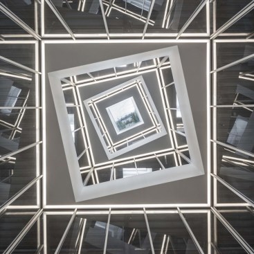 In honor of the Navy Yard’s maritime history, 1200 Intrepid’s lobby features a periscope through which building tenants and visitors are offered a view of the ships docked in the water nearby. The building’s center is open all the way through to allow for maximum light exposure to each center-bordering office, and to represent an office-wide unity while maintaining each individual space’s privacy.