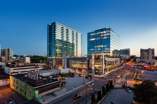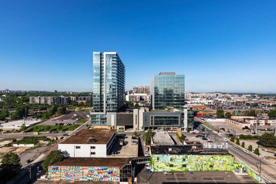 At the corner of Demonbreun Street and 12th Avenue in The Gulch, this new 285,000 square foot, 15-story office tower is close to both downtown and Music Row. Sited to dynamically speak with it 23-story residential neighbor, TWELVE | TWELVE, at the southeast corner of the block, 1201 Demonbreun marks its location as a gateway to the inner loop of Nashville through its verticality and welcoming streetscape. The building’s 4-story podium includes retail, office and a restaurant, all which wrap an above-grade parking structure. The podium defines a pedestrian scale and activates the street by placing occupied spaces adjacent to the sidewalk. A fitness center and fifth-story green roof terrace are included as occupant amenities and enjoy sweeping skyline views. For additional parking, the building also includes a 950-car below-grade lot.