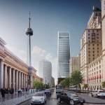 160 Front Street is contextually integrated to the street grid of Toronto’s urban fabric and enhances the pedestrian experience by creating broader sidewalks with landscaped areas both on Simcoe Street and Front Street. The adjacent 6-story masonry heritage building will be renovated and integrated into the architecture and program of the tower, providing an historical perspective to the tenants of the building.