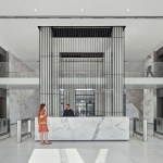From the street, the adjacent 315 Buckingham St parking garage is as monumental as the SOB itself. Modern and sculptural, the garage’s exterior precast concrete finish matches the SOB’s limestone color, creating a harmony between the neo classical building and this very contemporary solution. The garage, which is also used by a neighboring nonprofit theater venue, along with the open and inviting building and adjacent park, form an important link in Hartford’s once fractured center, which is working to regain walkability and prosperity. The SOB has reclaimed its revered civic place in Connecticut’s capital city.