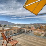 The project is comprised of two unit types. Four of the units are 1,834s.f. and include penthouse accessed roof decks with urban and mountain views. The remaining three units are 1,656s.f. each. Pedestrians enter from street side into the 1-1/2 story living room with large south facing windows. The second floor contains the dining, family room, kitchen pantry and half bath. The third floor has two master bedroom suites with private bathrooms and walk-in closets. The south bedrooms have balconies.