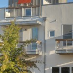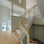 The organization of the units is provided by the open stair that connects all levels visually and fills the units with natural light from its central skylight. The materials of the exterior include stucco, cement board siding, metal railings, canopies and hardwood decks. The units are designed to accommodate an elevator should owners want to add them in the future. The design is guided by sustainable principals and complies with the EPB Energy Right Program.