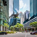 The design creates a dramatic visual and functional terminus at the V-shaped site defined by Market Street and Robinson Road. Two primary volumes, a hovering crystalline office tower and a secondary retail podium, make up the principle building elements, separated by a podium garden. 20 office floors extend elegantly well above the podium, maximizing the building height and marina views. The multi-faceted composition of the tower serves to increase natural light, mitigate direct views into adjacent towers, and reflect light to create a gem-like beacon for Singapore.