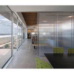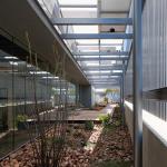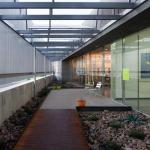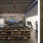On the plus side, the building had a large circular driveway—a remnant of the restaurant’s drive-thru—but it had undesirable west-facing glazing that had to be addressed. The firm gutted the building and created a landscaped entry courtyard and screen system to prevent heat gain. A large open plan in the front houses the studio and a 1,100-square-foot addition in back is reserved for the garage and workshop. Interiors are straightforward, with concrete floors, exposed roof trusses, and gypsum walls.