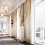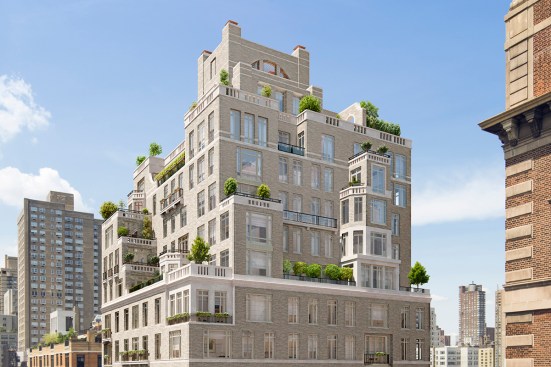 Filling out a traditional Manhattan block, 20 East End Avenue will have a strong relationship to the street, with a traditional entrance on East End Avenue and a porte-cochère off East 80th Street that leads to a cobblestone-paved motor court with lattice-work trellises, a fountain, and a private entry. Both entries connect to an octagonal lobby with a winding staircase connecting three floors of amenities, including a library, a billiard room, a wine cellar and wine-tasting room, a 3,000-square-foot gym, and a spa. The 17-story residential building comprises 43 residences scaled for family living, including half- and full-floor apartments, three duplex maisonettes, and two penthouses. Principal rooms will be 11-14 feet high.