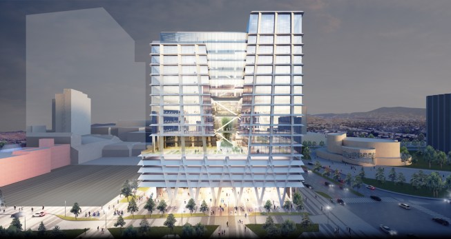 200 Park is a tech-oriented office tower that brings the energy and identity of Silicon Valley to downtown San Jose’s urban core. Located in close proximity to the Tech Museum of Innovation and the Center for the Performing Arts, the striking design of the 19-story tower is set to redefine the city’s cultural district while acting as a gateway between the downtown core and the proposed Google transit village to the west near Diridon Station.
