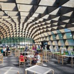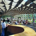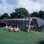 The result was a structure that mirrored the domestic scale of the Serpentine and articulated the landscape between the two buildings. The Pavilion was based on a simple rectangular grid, which was distorted to create a dynamic curvaceous form. It comprised interlocking timber beams, a material that accentuated the relationship between the Pavilion and surrounding Park.