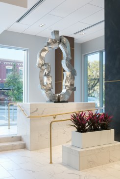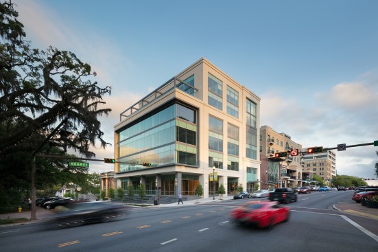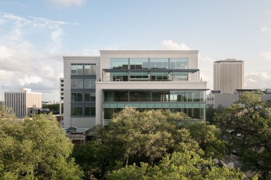 This 80,000 SF building is downtown Tallahassee's newest state-of-the-art mixed-use building. Located on the prominent corner of E. Park Avenue and Monroe Street, tenants have ease of access to the Capitol Center, outdoor spaces with the adjacent Chain of Parks, and central downtown amenities. The building includes adjacent above-ground parking, ground-floor retail, common lobby and five floors of office space above. The building mass steps back from the north face at the 5th floor level. An exterior roof-top entertainment space is located above and allows users to enjoy the views over the Chain of Parks area as well as filtering the desirable natural light into the adjacent office spaces.