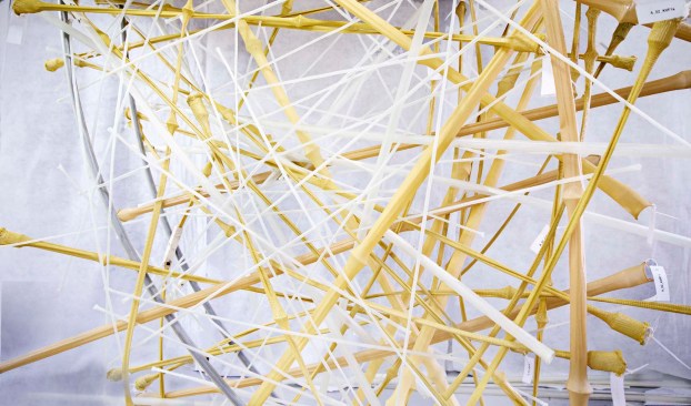 ‘LifeObject’ is a material exploration of the relationships between the artificial and the natural in the future built environment. Its starting point is nature’s iconic model of a home – the bird’s nest; an assembly of weak and light found materials with no additional joints or glue, out of which emerges a free-form complex structure that is extremely light, robust and highly resilient. Through an experimental process of scientific analysis, coding, material research and design, ‘LifeObject’ transposes the resilient properties of a bird’s nest into an architectural form.
