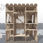 The Forests of Venice extends inside the greenhouse where seven selected architectural practices – Architects without Borders Sweden, Arrhov Frick, DinellJohansson, Horn.Uggla, In Praise of Shadows, Carmen Izquierdo and Urbio – showcase how classical Venetian architectural and urban elements can be interpreted and translated into new strategies for our time. Once again presenting wood as the main material.