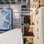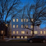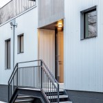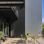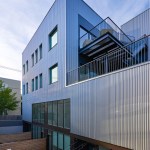 The building is organized as a small community of individual dwelling units wrapped in one contiguous skin. Unlike a single-family home, each residence is designed with at least three distinct orientations and abundance of outdoor space, maximizing daylight and cross breezes throughout the day. The outward appearance of this project is a direct result of the strategic interior planning, with two large cubic voids defining large terraces at the second floor. In these voids, the articulated steel balconies and stairs are nested, echoing Chicago’s infamous fire escapes and adding visual relief at the SE and NW corners of the site. Individual, large window openings in the building’s corrugated metal skin appear more as perforations within the overall mass, perceptively reducing the building scale among its fellow neighbors. Selected for its reflective qualities, the exterior cladding produces a dynamic play of light and shadow across the façades, highlighting atmospheric changes brought forth by the seasons and throughout the day.