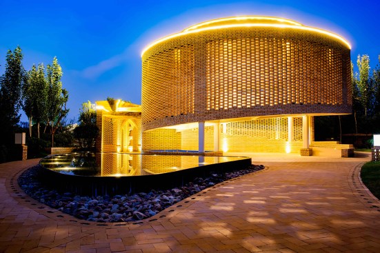 The Garden Pavilion is a semi-open and modern landscape building. The design expresses the concept that the architecture embraces the public space. The combination of the architectural space and each detail element reflects both of the modern architecture style and traditional architectural features of Urumqi. The entire circulation experience of the pavilion is an expression of the outdoor landscape expansion. For example, the rotating ramp brings the outdoor "string" garden into the interior area which blurs the boundary between inside and outside space. The modern corridor and the hidden pillar structures give more possibilities to the overhangs and opening of this brick pavilion.