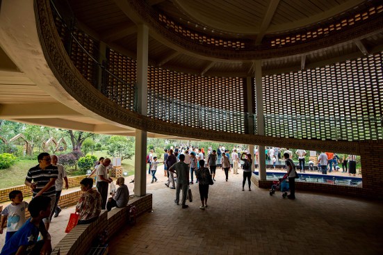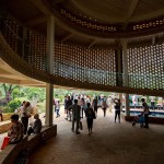 Following the ramp, visitors will be able to see the central stage from different angles, where people usually gather and interact. Furthermore, the roof and facade of the building are inspired from the Urumqi residential type called "Ayiwang" and the brick form. Those traditional archetypes and the choice of simple materials make people feel the ever-changing architectural light and shadow. At the same time, it helps to touch their memories of the beautiful Urumqi, enjoying the beauty of the pavilion.