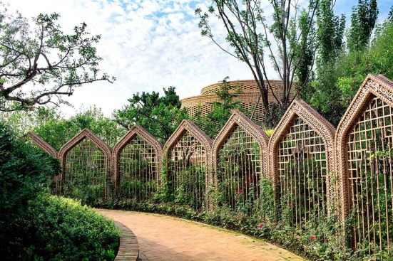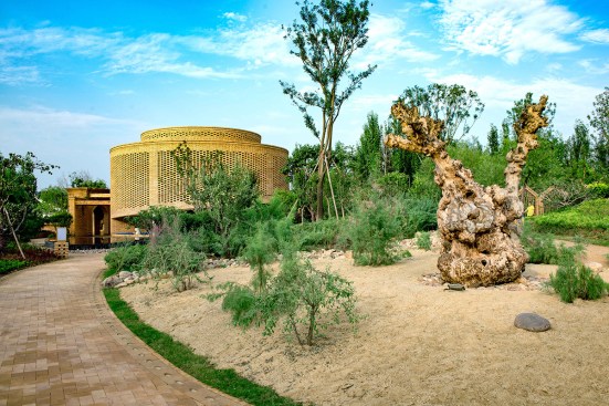 The design strategy aimed to bring back the core value of horticultural expo. We achieved this by implementing fundamental landscape approaches such as space making and planting design. Simultaneously, we also tried to express ethnic identity in a modern way. We designed a music-themed tour route which was inspired by the traditional Urumqi stringed instrument– rawap. The route was made up of a meandering "string" path, creating a rich spatial experience of rising and descending drama clubbed with both open and closed spaces. The entire route was based on the Urumqi maqam rhythm. The climax of the "string" path was a circular pavilion with a perforated brick pattern skin, that representing the core part– the sound hole of a rawap.