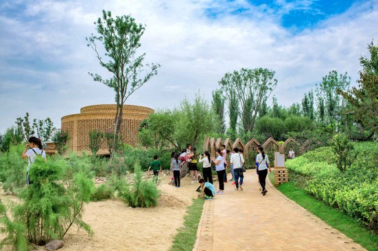 We carefully selected local plants that resembled Urumqi's plant species to represent Urumqi's natural and cultural landscape, this included recreating rose field, desert land, grape trellis and green oasis. Planted with Tamarisk, Angustifolia and other drought tolerated species, the small sand field -which was also a rain garden- recalled people's memory on the Gobi landscape of Urumqi.