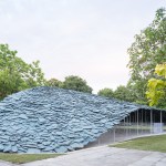 Describing his design, Ishigami said: ‘My design for the Pavilion plays with our perspectives of the built environment against the backdrop of a natural landscape, emphasising a natural and organic feel as though it had grown out of the lawn, resembling a hill made out of rocks. This is an attempt to supplement traditional architecture with modern methodologies and concepts, to create in this place an expanse of scenery like never seen before. Possessing the weighty presence of slate roofs seen around the world, and simultaneously appearing so light it could blow away in the breeze, the cluster of scattered rock levitates, like a billowing piece of fabric.’