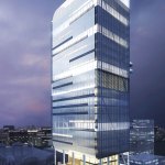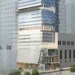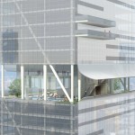 The site for this residential project is directly adjacent to the World Trade Center, a place with a most poignant history. To the chagrin of many, the Trade Center’s new commercial buildings appear opaque and scale-less. In contrast to this ubiquitous and aloof corporate face, we designed a building that embraces a sense of community and optimism. Our building is imagined as a vertical village, a stack of townhouses, separated by perimeter terraces overlooking the neighborhood. A diaphanous skin curves out like giant eyelashes to shade these terraces. High up in the building a triple height indoor/outdoor community space provides magnificent views of lower Manhattan.