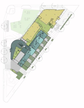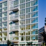 Instead of resisting the conditions, Shalom Baranes Associates embraced them. The firm’s design team inserted a bar-shaped building that blends with its context and created façades that respond to the street. They even incorporated the eyesore service station. “We came up with this sculptural piece that’s topped by a floating garden,” says Robert M. Sponseller, AIA.