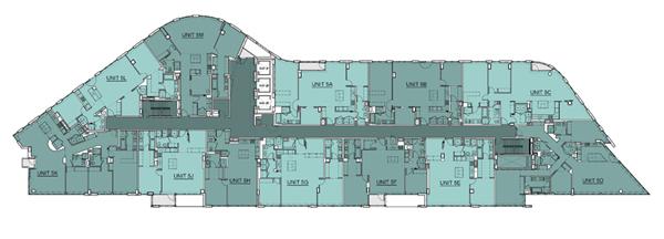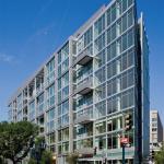 The site for this luxury condo building is in a re-emerging section of Washington, D.C., but its location—next to an operating service station and wedged between two converging traffic arteries—made it less than promising.