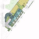 The curvilinear building includes 7,500 square feet of retail and restaurant space, as well as five ground-floor duplexes. “We sought a variance to increase the height of the building to stretch the ground floor, so that everyone is above the [service station’s] canopy,” Sponseller explains. As a result, every unit has a view of the garden. Eschewing the city’s ubiquitous brick cladding, the firm chose a zinc rainscreen system that’s installed on a material-efficient 3-foot module, which offers flexibility for an exterior door or window. The team also recessed portions of the building to carve out balconies and used the roof for additional outdoor space.
