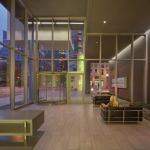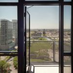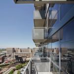 This residential tower turns a box into three-dimensional sculpture. The freeway-facing southern façade features staccato balconies protruding from a concrete frame, a response to the adjacent taller buildings and the highway’s energy. “It makes a kinetic billboard, a Mondrian-like façade that picks up the movement of traffic,” says Ralph Johnson, FAIA. The northern side, viewed from a shorter distance, is more intimate in scale, and its flush grid of inset balconies reflects the skeleton-expressed buildings of the Chicago school of architecture. To save on exterior wall costs, the units are deep, with rear bedrooms borrowing light from the loftlike living spaces.