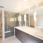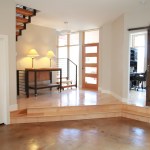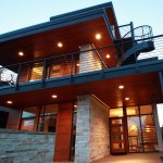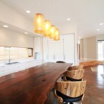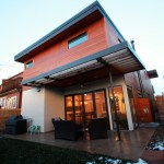 2407 Vine is conceived as a delicate jewel box made with intersecting planes of fine stone, glass and beautiful clear cedar. The clients requested a home that was open, flexible, and full of light. The lot was especially tight at just 34 feet wide. Because of the tight lot most of the site and outdoor space would be taken up by the building footprint to meet the required program. The idea with this home was then to make every space multi-functional and open up and connect you to the outdoors and natural daylight. You enter the main level through floor to ceiling door and window facades. The living room has a stained concrete floor that goes continuously from the inside to a large back patio separated by a full length folding glass door. On nice days the entire wall of doors is opened up to create a continuous space between the living room and the back patio. A custom walnut table with castor wheels was fabricated for the space. On nice days they can simply role the dining room table outdoors. At the second level all the bedrooms have large framed windows and a large and private deck opens up from the master bedroom.