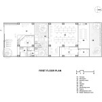 The second element is the two-functional block interwoven between the green areas to create a comfortable working space. Approaching the work is the external space (reception) than the interior space (office) inside. They are separated by a system of trees, creating a quiet place to work better than ever. The upper floor of the building also includes the same internal functional areas as well as operating and researching rooms. Thus, the freeing of space opens the view through both directions of the building in an airy way.
