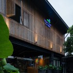 In terms of materials, as mentioned at the beginning, acacia wood is a fairly common local material and we use it for entire the furniture of the project. And thermo wood was used for the system in the facade of the building, which is highly identifiable in the current context.