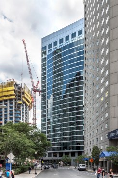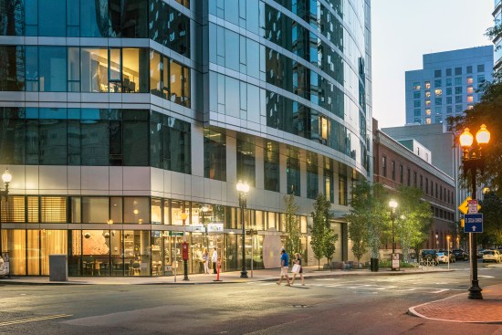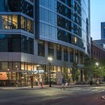 The 26-story glass-and-aluminum-clad apartment tower, poised at the edge of Christian Science Plaza in the Back Bay neighborhood, offers residents sweeping views of the Boston skyline.