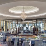 A fundamental element to those who had experienced the original Rainbow Room was the iconic rotating dance floor in the epicenter of the room. For this memory to endure with future generations, the floor was restructured to include new framing, acoustics and rotation motor underneath the new wood floor. Directly above the reengineered dance floor is the iconic dome ceiling, which was restored and finished in a silver leaf. Additional lights were added within the cavity of the dome to further accentuate the sparkle of the chandelier and illumination of the dance floor. The chandelier in the center dome, sconces and glass globe posts were restored to their original glory by replacing damaged crystals.