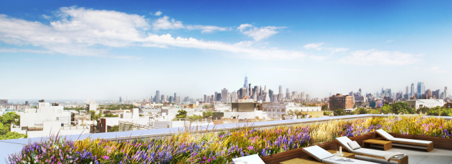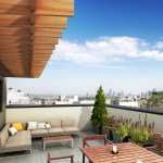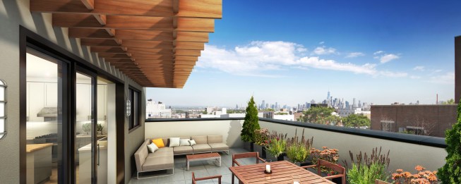 Each condominium unit will feature a Juliet balcony, private terrace, or garden. The views from the units look to Brooklyn, the New York Harbor and the Manhattan Skyline, as does the view from the communal, landscape roof deck.
