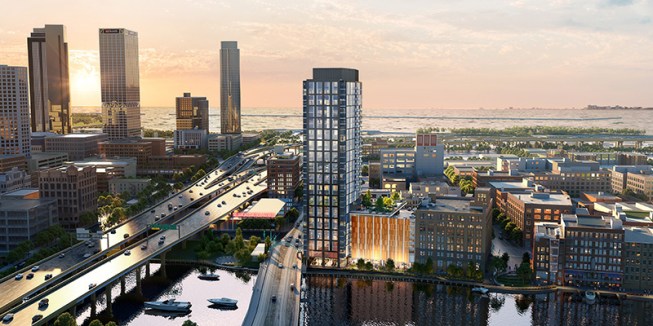 The design for the project creates a new public access point to the Milwaukee RiverWalk by extending the existing path to the corner of St. Paul Avenue and Water Street, providing a connection to the beloved Milwaukee Public Market nearby. The ground level includes 10,000-square-feet of retail, including space envisioned for a restaurant with significant outdoor seating along the river.