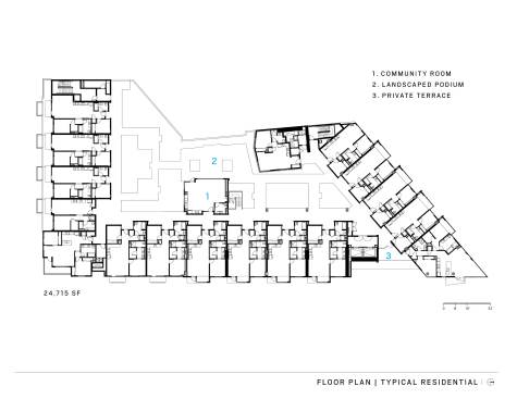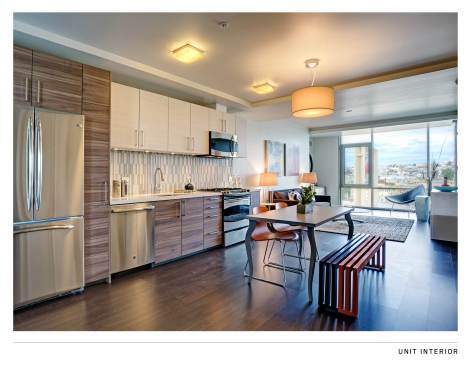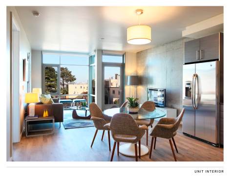 38 Dolores utilizes 13 unique floor plans to support a highly diverse marketplace, optimize building efficiency and respond to the site’s unique geometry. Residential units have open plans providing spatial flexibility in the kitchen and living areas. Spectacular views connect residents to the city while the landscaped courtyard, communal fire pits and commons room are designed to strengthen community interaction.