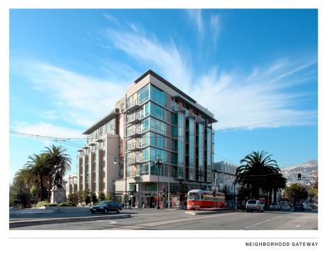 Located at the prominent corner of Market and Dolores Streets, 38 Dolores transforms a vacated auto showroom into a sustainable, 8-story, multifamily development at the confluence of San Francisco’s most vibrant neighborhoods. The project features a flagship 30,000 square foot Whole Foods Market with 81 luxury residential rental condos above.