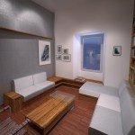 40 foot is one of Officinaleonardo’s first projects, it has been a great testing ground, showing a way pursued in every projects since that. The apartment is 27 square meters only but we got through to increase the space up to 42 square meters. The name “40 foot” originate from navigation, is referred to its new structures and features. This is the first application of a molded iron mezzanine, an element that will be often used in Officinaleonardo interior’s projects. Here and in all our location the space is developed and shaped around the owner’s requirements. The owner is a graphic designer with a passion for parties so it was indispensable to get wide surface to her graphic work and a big dinner table with 12 seat. A glass cut between bathroom and hall has a RGB led lighting inside to light up the spaces. A mezzanine glasswall’s part gets opaque and became lighting diffuser of upper story led spotlight. An articulate system of convertible planes allows light and to the external outlook to enter and each furniture is custom made.