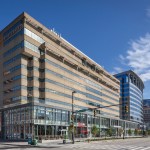 The 400 East Pratt Street Expansion is a two-level, mixed-use, commercial addition to an existing Class-A office building. The addition contains 44,000 square feet of retail and office space, surrounded on three sides by a two-story curtain wall. The ground floor hosts the new lobby, serving the entire building as well as three fast-casual restaurants, a bank, and a convenience store. The second floor hosts new office space and a rooftop terrace which offers tenants scenic views of the city and Baltimore’s famous Inner Harbor. The “jewel box” design concept was conceived to be light and transparent, not only to provide office tenants maximum visibility of the Inner Harbor during the day, but to glow in the evening with vibrant pedestrian activity.