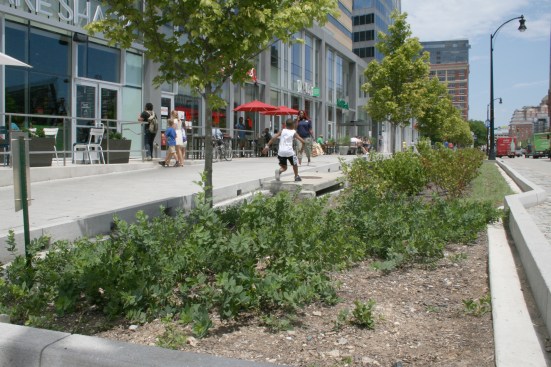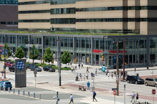 In the original Pratt Street Master Plan, all buildings were set back from the street a significant distance to provide green space as a way of offsetting the industrial feel often found in urban centers. The intention was to create large landscaped berms that act as a buffer between vehicular traffic and pedestrian promenades. This approach, however, created large empty and occasionally desolate spaces that weakened street connectivity and human interaction. The new Pratt Street Master Plan proposes to add projected Retail frontage to the existing architecture that will bring more commercial development to the area and increased pedestrian activity. The first building addition to be built as part of the redevelopment vision set forth in the new Master Plan, 400 East Pratt has become the design catalyst for future Pratt Street corridor redevelopments.