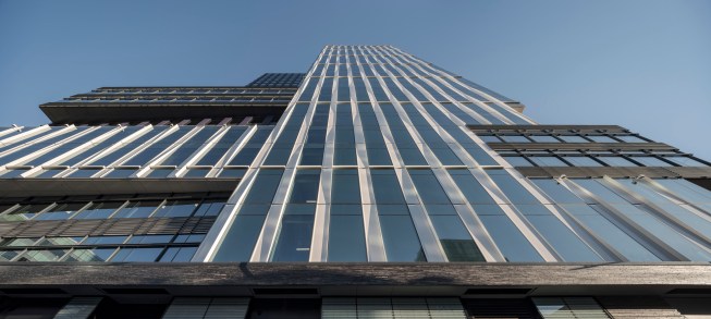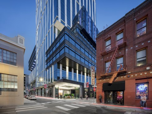 The two stepped, intersecting volumes of the tower echo SoMa’s intimate and intricate urban fabric, while layers of cantilevered volumes at the podium provide multiple terraces that bridge the relationship from interior to exterior. At the ground level, a publicly accessible interior living room extends outward via large sliding glass doors to the adjacent streets and the Parks at 5M, intermingling public and private. An arcade of retail and food and beverage options further activates the ground plane by inviting those visiting the adjacent parks to engage with the building.