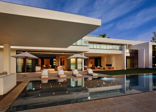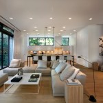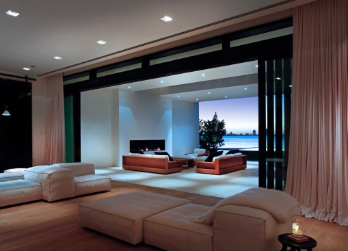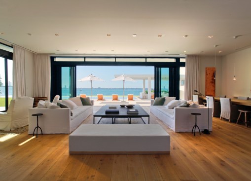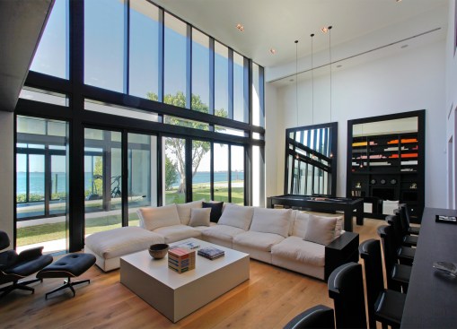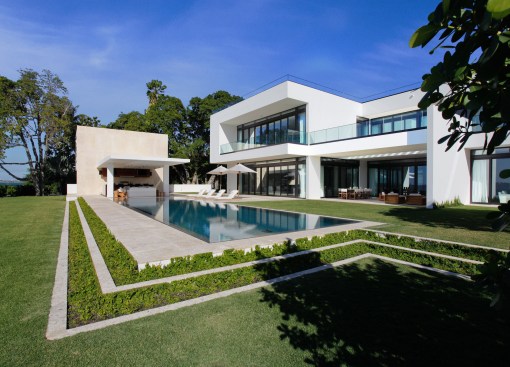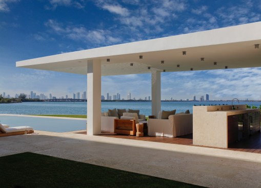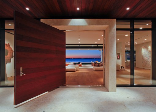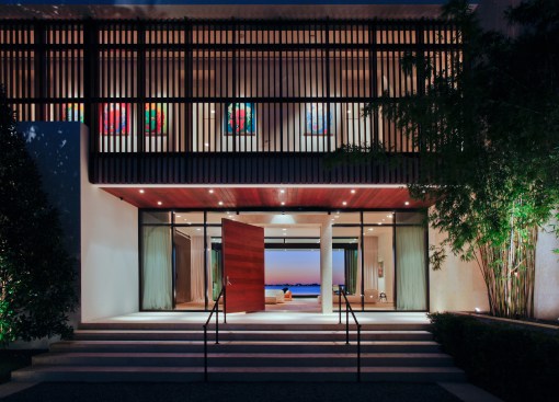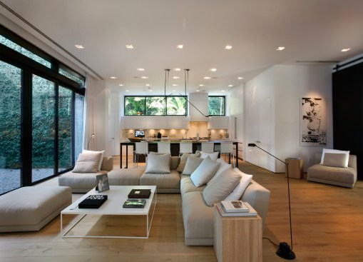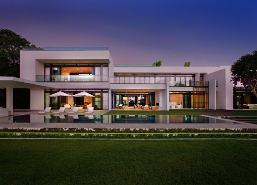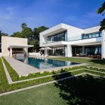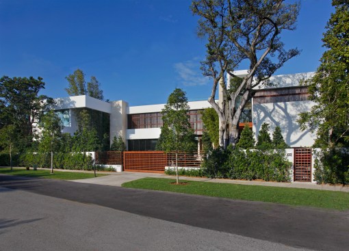 Choeff Levy Fischman are experts in the field of Modern and Tropical Modern architecture, the use of indoor-outdoor living design and environmental architecture which focuses on the melding of the elements that surround an individual site. According to Choeff Levy Fischman, many of their clients specifically ask for Tropical Modern, drawn not only to its aesthetics but also to its principles. Baseball star Alex Rodriguez’s former home at 4358 North Bay Road in Miami Beach is a good example of both. The entire rear façade of the house is comprised of glass sliding doors opening it up to stunning Miami skyline and Biscayne Bay views, bringing them into the interior of the space. A 450-square foot, double-height greenwall atrium – situated between the living room and kitchen on the first floor and the master bedroom and bathroom on the second floor – draws natural light into the deeper interior areas. The high-ceilinged living area can easily evolve into a lavish entertaining space. Lines and tones are consistent, pure, and clean; floors are beeswax-finished white oak, and art selected by the client adds warmth, color and character.