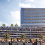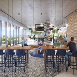 To further define the work experience in Miami’s creative district, efficient, expansive floor plates at the upper levels were designed that appeal to the tech-focused tenants and the community at large, which was made possible by interlocking the office and parking and by creating a side core building versus the standard center core building Miami residents are used to seeing. Rotating the office floor reduces the building mass and provides opportunity for additional outdoor space, a desire recognized as a top 5 workplace investment that delivers the highest value to tenants and their workers. Each floor was built to bear 14-inch slab-to-slab heights and floor-to-ceiling glass, both extremely unique design elements in Miami, finished off with both a North and a South facing balcony. The tower will also be complete with an 18,000-square-foot amenity deck that welcomes tenants with a variety of lounge spaces, an indoor/outdoor bar, and sculptural shading element.