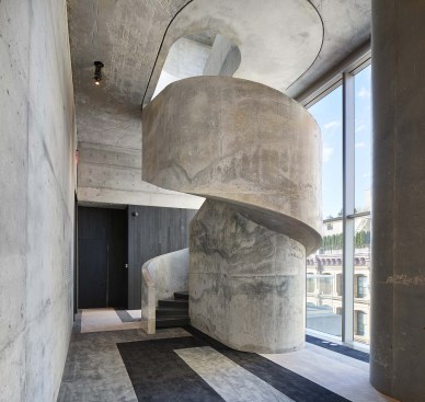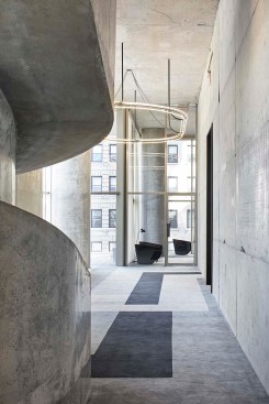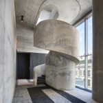 The overall appearance of the tower is very much a result of accepting and pushing to the limit simple and familiar local methods of construction. As a volume, the building has extreme proportions – at the very edge of what is structurally possible – and given its relatively small footprint, is exceptionally tall and slender. The building also shows its structural ‘bones’ and does not hide the method of its fabrication underneath layers of cladding. Instead, exposed horizontal concrete slabs register the floor-by-floor stacking of the construction process and exposed in-situ concrete columns allow the scale of the structural forces at work to be experienced from within the interior. The system of staggering and stacking is further animated through operable windows in every second- or third- façade unit.