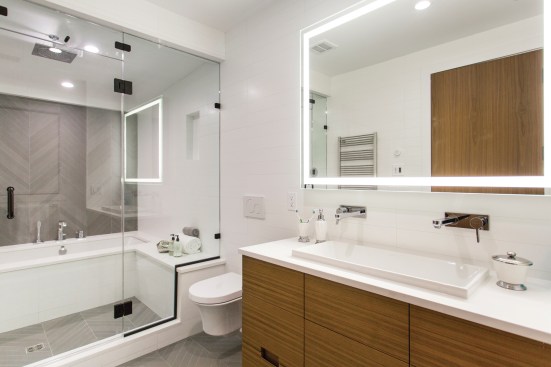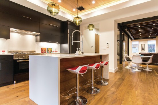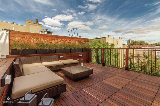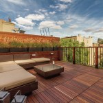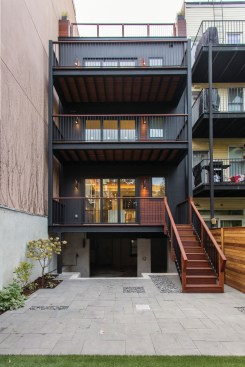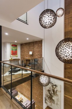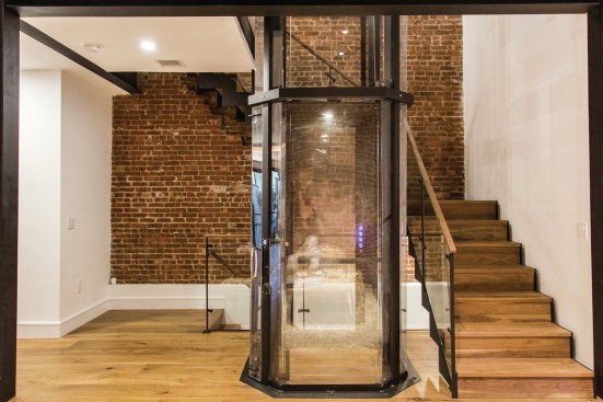 609 Willow, a four-bedroom, four-and-a-half bath showplace pairing old and new along Willow Avenue with historic bones and top-notch modern amenities. The home’s bold façade strikes an immediate and impressive note with repointed original brick and restored features painted a daring, unifying black. This unique and unexpected treatment creates a contemporary focal point on a block that features both historic townhomes and newer construction buildings. Inside, rather than an enclosed vestibule commonly found in townhouses of this era, an open entry welcomes arrivals and underscores the sprawling openness of the space. The team at Dixon Projects extended the rear wall of the home 16 feet into the yard to create expansive living spaces throughout.To prevent the center of the home from falling into darkness due to the rear extension, a striking central lightwell was added and topped by a massive skylight. This 35-foot atrium, wrapped in glass handrails, floods the interiors with light while echoing the glass exterior of the home’s adjacent elevator — a rare convenience in Hoboken townhomes. In contrast to the modern glass features, the home’s welcoming parlor floor living room is lined with original brick walls and exposed beams. Further on, you’ll find a massive open kitchen with top-of-the-line appliances by Bertazzoni and Bosch, while the garden flow below offers a fully-finished bright white space with industrial touches as an open canvas open to the owner’s interpretation as a rec room, home gym or storage space. Four large bedrooms, each with well-appointed en-suite bathrooms, flank the top two floors, front and rear, alongside a cozy second-floor lounge and third-floor laundry room. In the massive master suite on the top level, the serene bathroom has been artfully arranged to offer an abundance of amenities. The deep soaking tub is clad in stone and set within the boundary of the glass, walk-in shower/steam room. A massive, dual-faucet vanity provides ample storage while the subdued gray herringbone tile sets a relaxing tone.Throughout the residence, outdoors and light are the main attractions. On the ground level, the paved patio and yard provides great, semi-covered space for all-weather entertaining, while the three floors above boast identical, oversized balconies accessed through folding NanaWall glass doors — inviting the outdoors indoors at the kitchen, master suite and second-floor bedroom. The crowning glory is the large IPE roof deck surrounded by eco-friendly green roof plantings and served by a convenient bulkhead dry bar. With glorious views all the way to the Empire State Building, this tranquil aerie provides a great spot for welcoming each morning and bidding adieu to each evening.