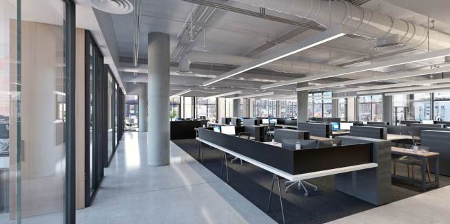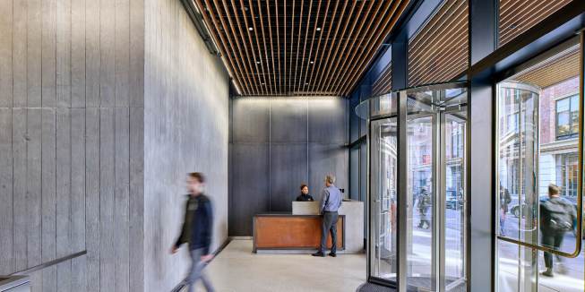The flexibility in the design of 61 Ninth Avenue responds to a particular market demand of the building’s neighborhood – Manhattan’s Meatpacking District – where offices are often housed in converted industrial spaces. The inherent character of these large manufacturing spaces is that they provide large open spaces with generous ceiling heights in contrast to center-core, high-rise office towers commonly seen in Midtown and other neighborhoods of Manhattan.