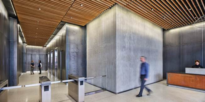This building provides nearly 150,000 square feet of commercial space in three levels of retail and seven levels of office space. The core is located on one side of the building rather than in the center in order to achieve flexible, open floor plans that can be fit out to accommodate a variety of tenant needs.