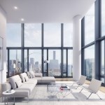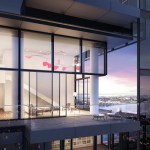 Residents of the tower’s 408 rental units and 148 condominiums will have access to distinctive amenities located on the second floor, including an indoor swimming pool, fitness center, children’s playroom, tablet/work room, game room, private dining room, and lounge. These amenities and public spaces come alive through a rich palette of colors and textures, and tactile materials. All living room and bedrooms in the building are configured to take advantage of the outstanding views. The light palette of the interiors—whites, grays and earth tones—complement the smooth and textured surfaces of wood, plaster and glass.