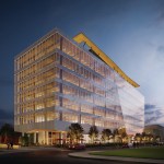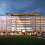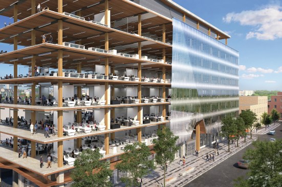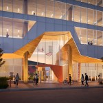 The overall design celebrates the advanced use of mass-timber construction within the ever-evolving architecture of Canada. The development and design of 77 Wade maximizes and streamlines the inherent structural and aesthetic qualities of exposed wood construction in a new and modern way; ultimately showcasing both our Canadian talent pool and our renewable wood resource. The building’s envelope will predominately be clad in a folded plain curtain wall to expose the innovative structure within, while also adding a dynamic form for the streetscape. The approach to the building is unified with an origami based geometric soffit and organic front entrance, retail and flexible collaboration spaces.