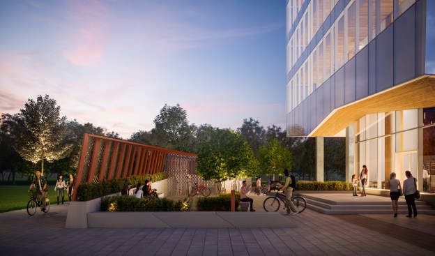 Adjacent to the site lies the Davenport Diamond Multi-Use Trail. The 77 Wade design proposes a pedestrian and bicycle link across the south end of the site. This facilitates a connection between Wade Avenue, the Multi Use Trail and the City at large. The multi- use trail will also feature an underpass connection at Paton Road to Erwin Krickhahn Park, which will further connect the 77 Wade Avenue users to larger scale green space.