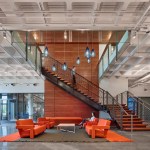 The new interior layout features two main entrance lobbies, providing opportunities for multiple tenants per floor while also lending a creative, open feel to the overall space. Two levels of parking occupy the top floors, with bright graphic signage carried throughout these spaces as well. The newly renovated building fetched the highest rent per square foot for the South Bay according to a report in February of 2015.