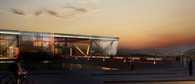 People will be able to access and move around the platform by car as well as on foot. In accordance to the terrain and available climactic data, the higher esplanade (situated +682,00) will constitute the multi-purpose public area, while at the lower level (+676,00) meeting points, restaurants and shops will ensure a permanent social life. The Fair center and its functional offices will be placed at this level, facing the inner garden of the building. The rest of the terrain will constitute the city park, mostly kept in its natural configuration.
